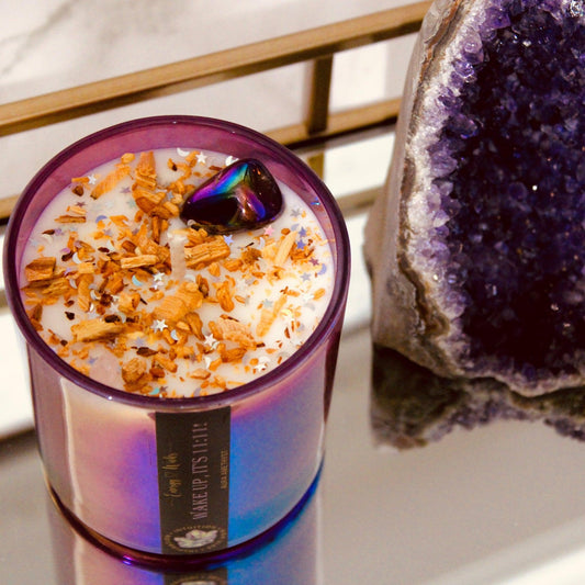 Votive Scented Candle with Herbs and Crystal Stones - Golden Moons